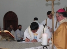 Os Diáconos recém ordenados convocaram todo o povo de Deus ali presente para rezar pelas vocações: “A messe é grande, mas os operários são poucos, diz Jesus, pedi ao Senhor da messe para que mande operários à sua messe. Por isso, em atenção a este mandato do Senhor, nós diáconos, juntamente com os sacerdotes aqui presentes, pedimos a todo o povo de Deus que rezem pelas vocações sacerdotais e religiosas, para que o Senhor escolha entre o povo, homens e mulheres que possam conduzir o povo de Deus para o caminho do céu. Que a Virgem Maria, que com seu ‘sim’ deu a resposta mais perfeita ao chamado de Deus, interceda neste momento para que a Igreja nunca falte vocações”.