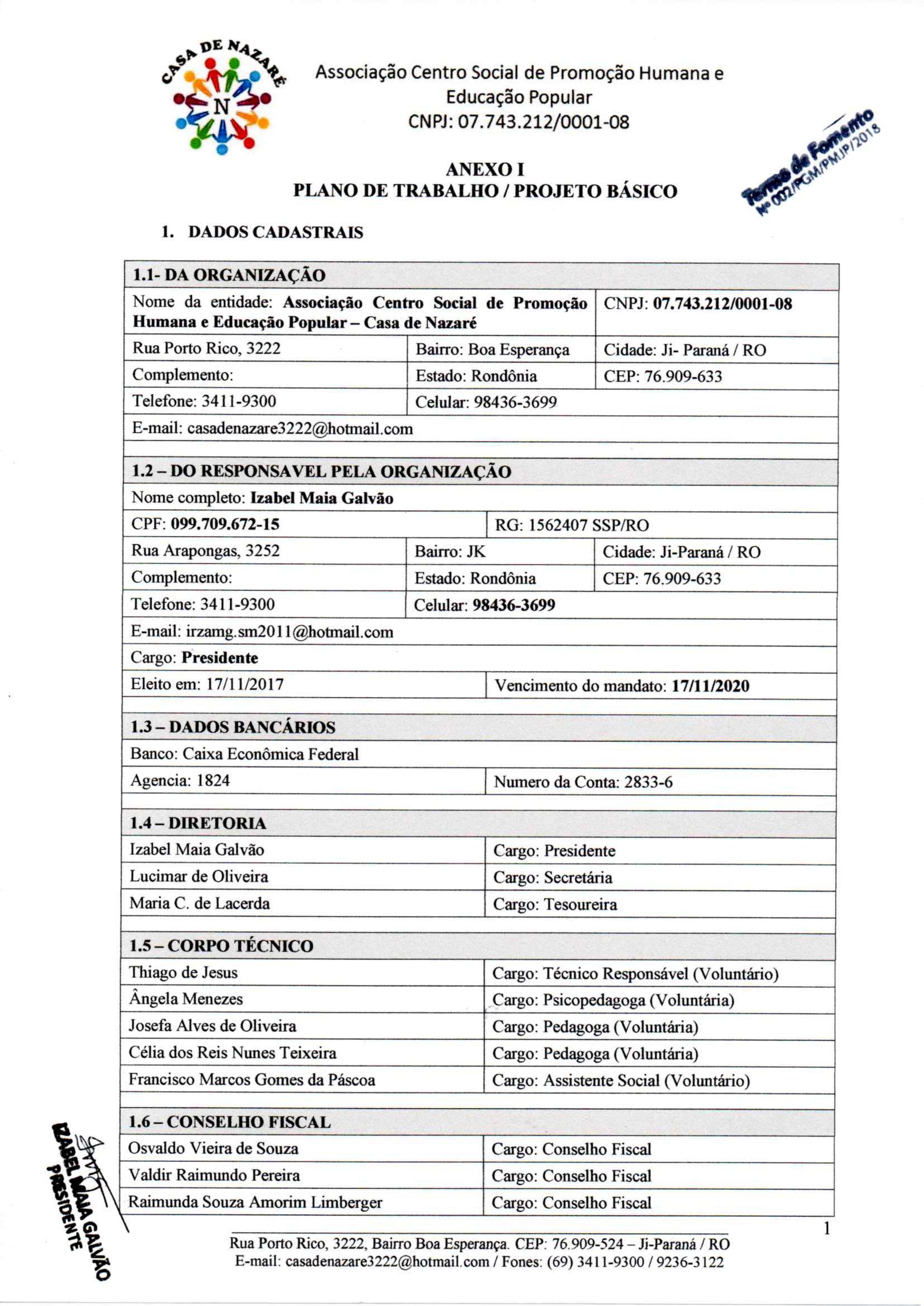Casa de Nazaré, em Ji-Paraná-RO, recebe recursos do Fundo Municipal dos Direitos da Criança e Adolescente e consegue dar continuidade em sua Ação Social.