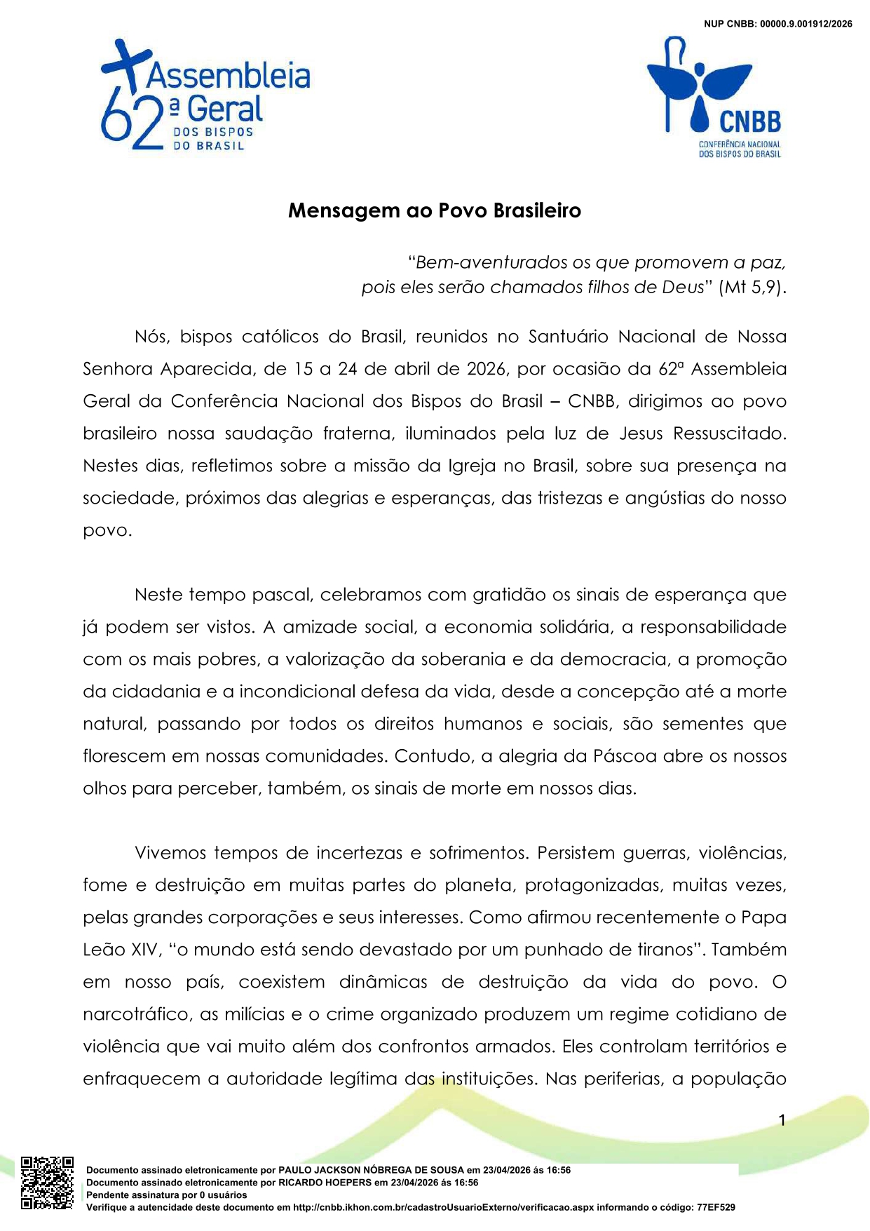 Mensagem ao povo de Deus, Bispos do Brasil reafirmam e renovam o compromisso de evangelizar!