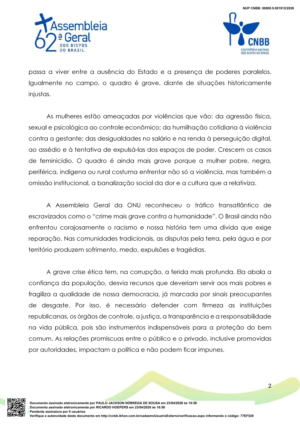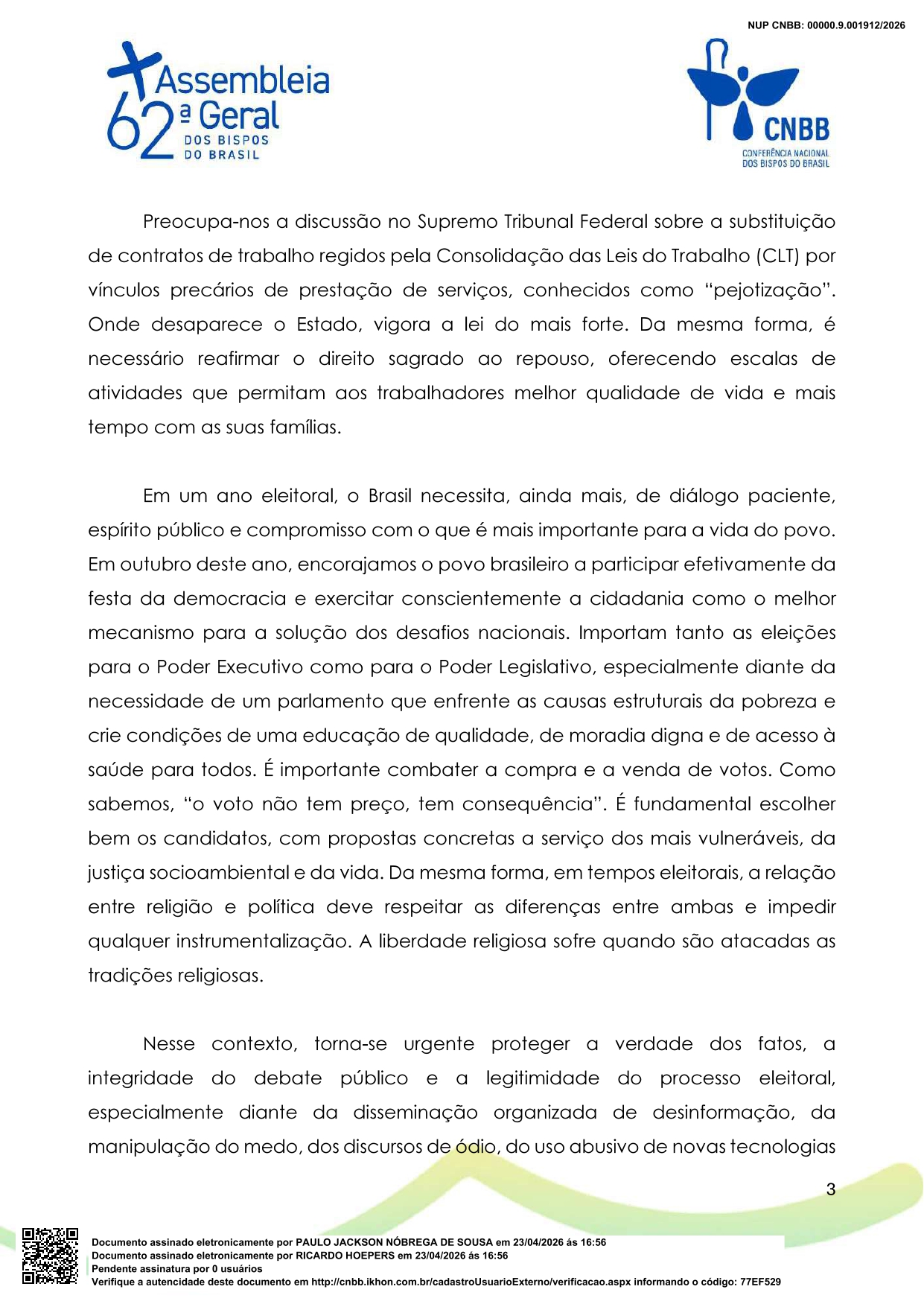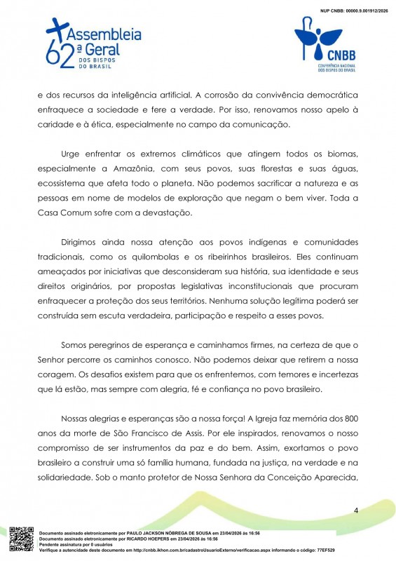 Fonte: Conferência Nacional dos Bispos do Brasil.